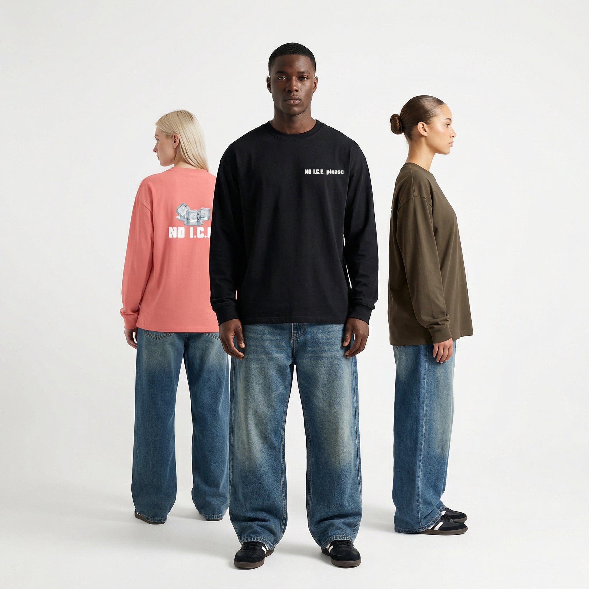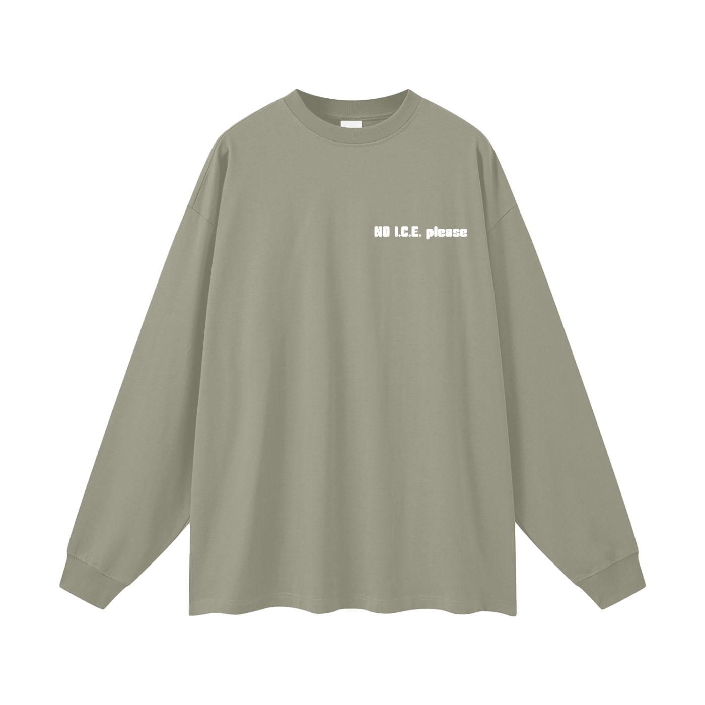Features: Premium heavyweight cotton voor een gestructureerd maar zacht gevoel Oversized unisex pasvorm voor een ontspannen esthetiek Lange mouwen met geribde manchetten voor een nette afwerking Krachtige boodschap "NO I.C.E. please" in minimalistische stijl Geschikt voor alle seizoenen